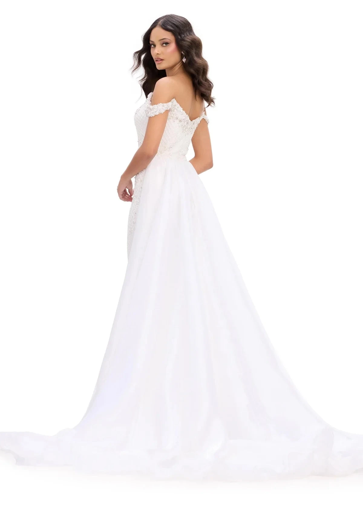 The Amethyst Gown is regal, radiant, and ready to rule the room. She’s luxe, luminous, and made for queen energy. Featuring a structured sweetheart neckline, off-the-shoulder bow straps, and a fully hand-beaded skirt, she’s finished with a dramatic organza overskirt for added volume and grandeur.