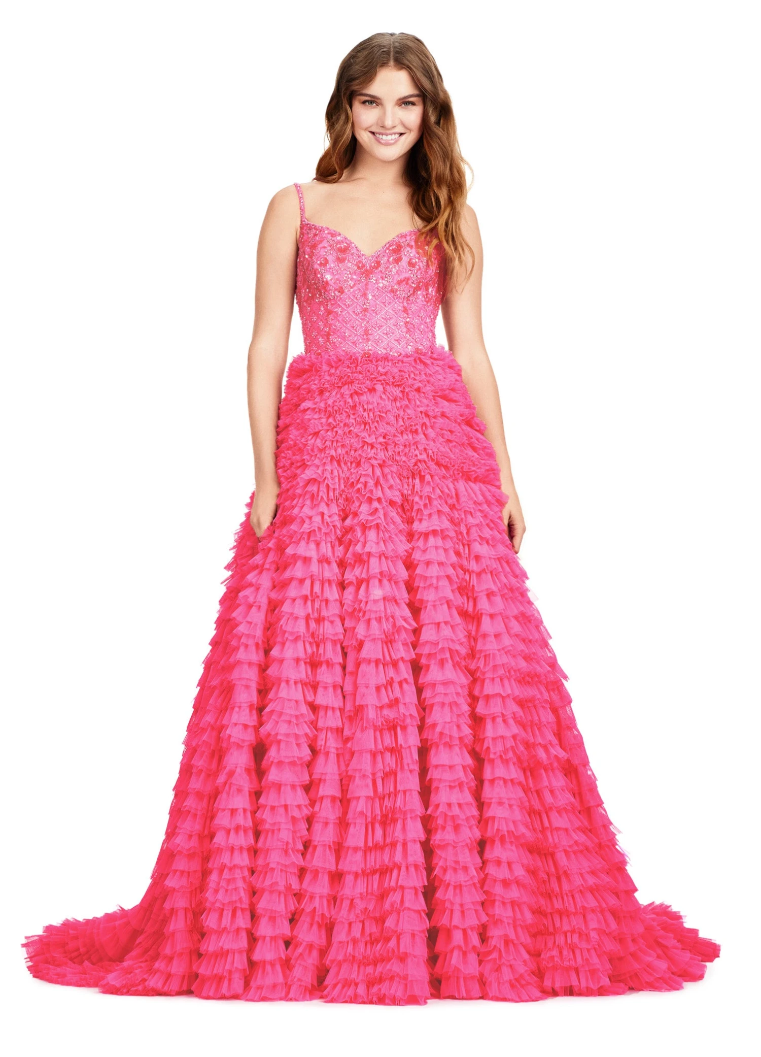The fully beaded bodice sparkles with every step, creating a radiant shimmer that enhances your silhouette, ensuring all eyes are on you.