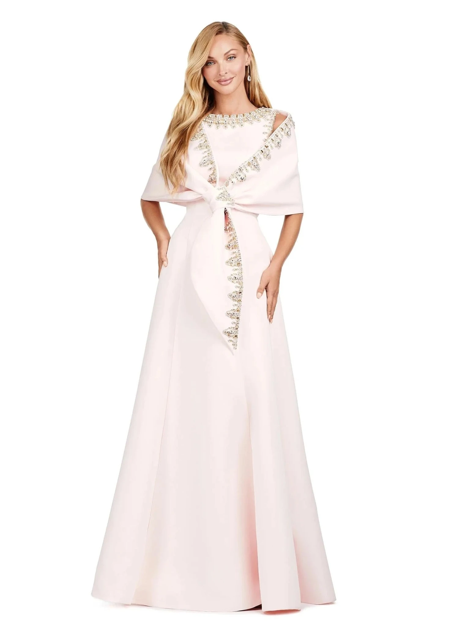 Finished with a sheer embellished shawl for added drama, she’s perfect for formal evenings, galas, or timeless occasions. ASHLEYlauren 11426.