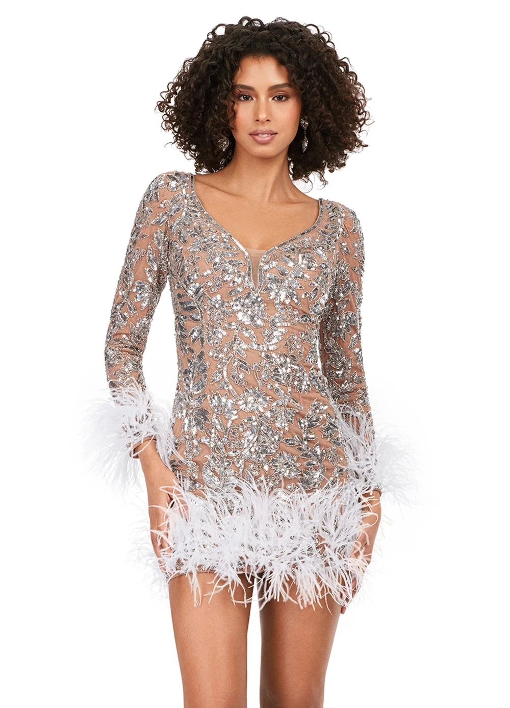 The Miami Mini Dress is sparkle, feathers and full-blown glamour. Covered in shimmering sequins with a plunging neckline, open back and feather-trimmed hem and sleeves, she’s a red carpet-ready sexy mini dress that guarantees attention. This gold sequin mini dress channels the naked dress trend with sheer shimmer and sculpted detail. Perfect for holiday parties, galas or statement resort events, she’s an unforgettable embellished evening mini dress. Now available with free worldwide delivery, duties covered and easy returns.