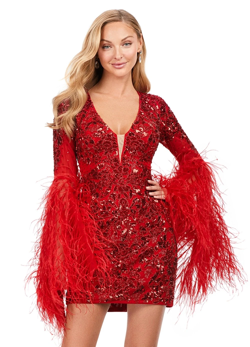 The Romy Mini Dress is elegance with a feathered twist. Featuring a plunging V-neckline, flared sleeves and all-over beading, she adds drama and movement to your classic formal mini dress. Her fitted shape flatters every curve, while the embellishment and texture nod to couture trends. Romy is your sexy sheer mini dress for galas, upscale celebrations and spotlight occasions. Now available with free worldwide delivery, duties covered and easy returns.