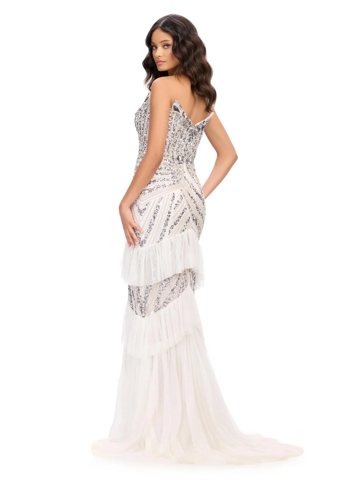Ideal for making a grand entrance at any event – she’s shimmering sophistication with a touch of playful drama. ASHLEYlauren 11438.
